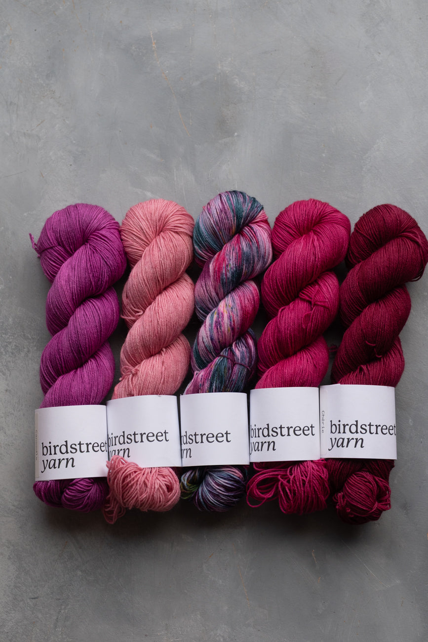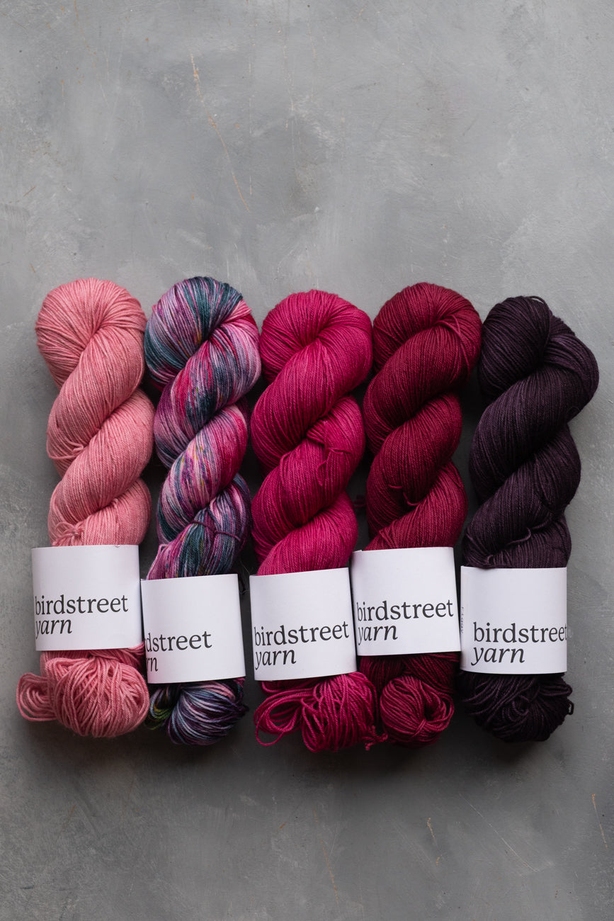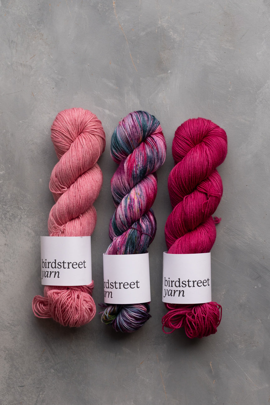 Hand-dyed using professional acid dyes; no two skeins are completely identical due to the nature of this process, though they are dyed in batches.