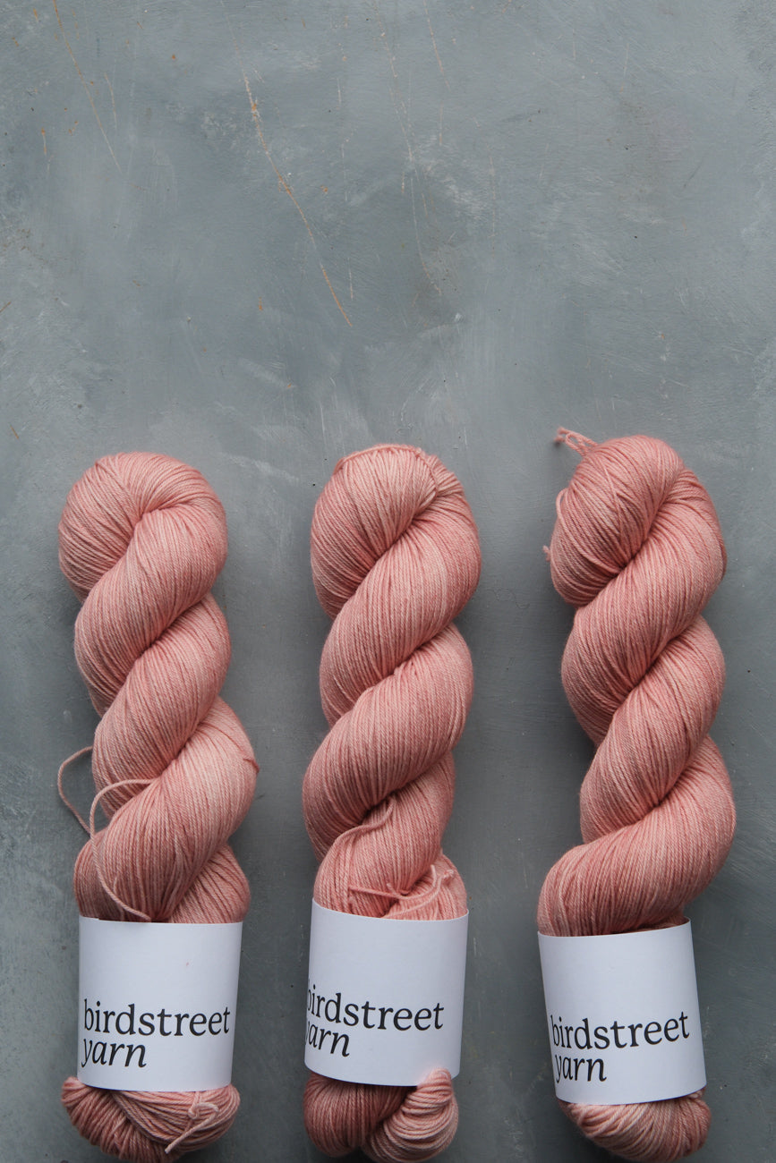 "Geum" is a beautiful, NEW dusky coral-peach, tonal yarn, in 4ply.