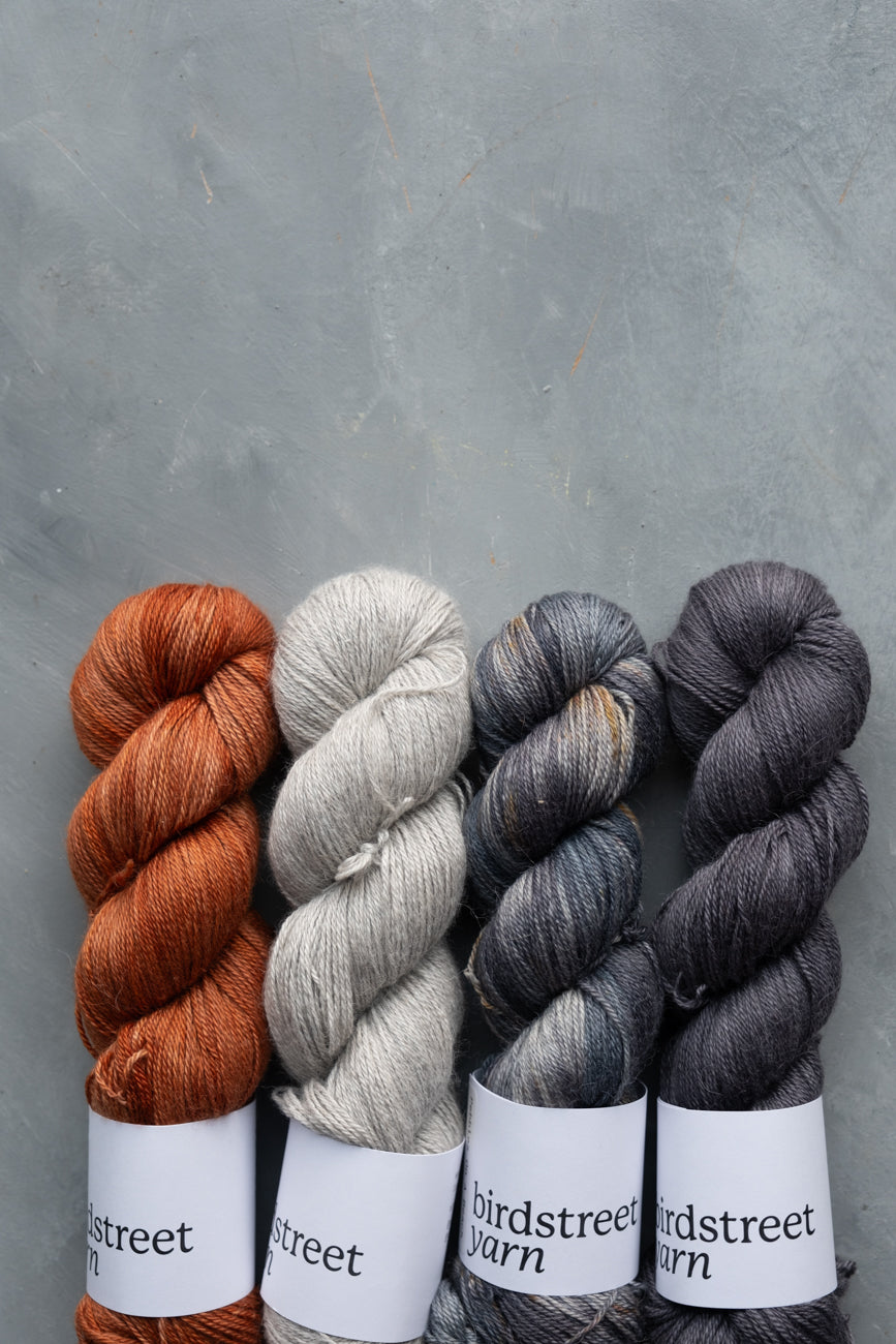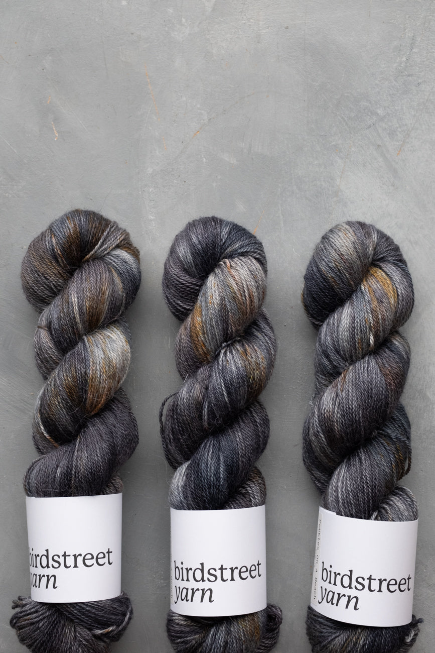 Hand-dyed using professional acid dyes; no two skeins are completely identical due to the nature of this process, though they are dyed in batches.