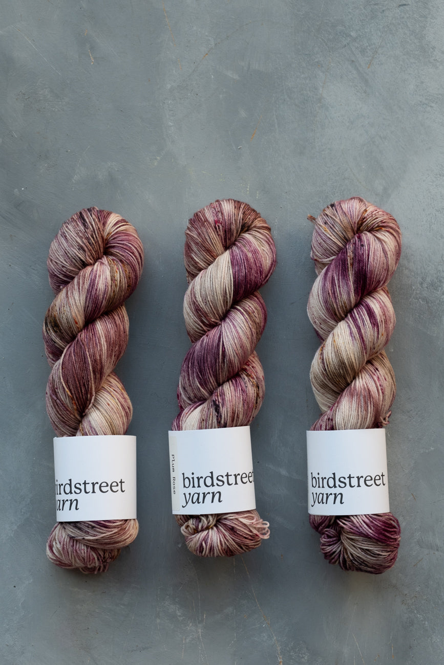 Hand-dyed using professional acid dyes; no two skeins are completely identical due to the nature of this process, though they are dyed in batches.